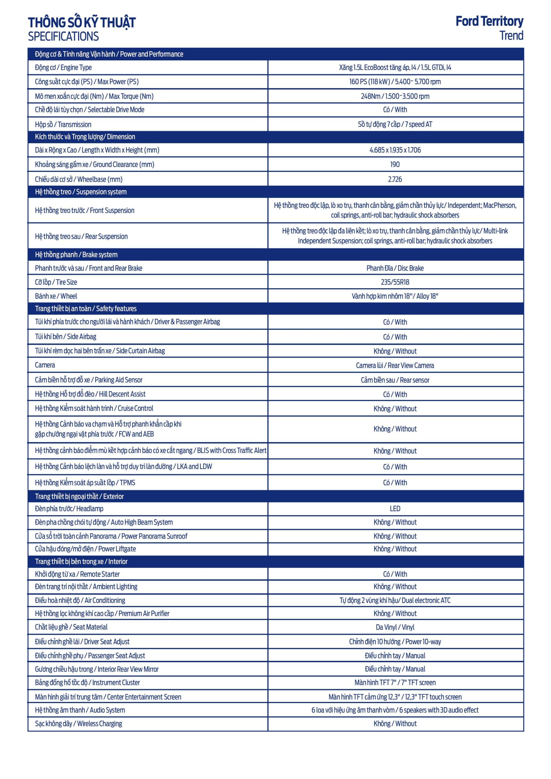 Ford Territory Trend Mới – Giá niêm yết từ 762.000.000 VNĐ